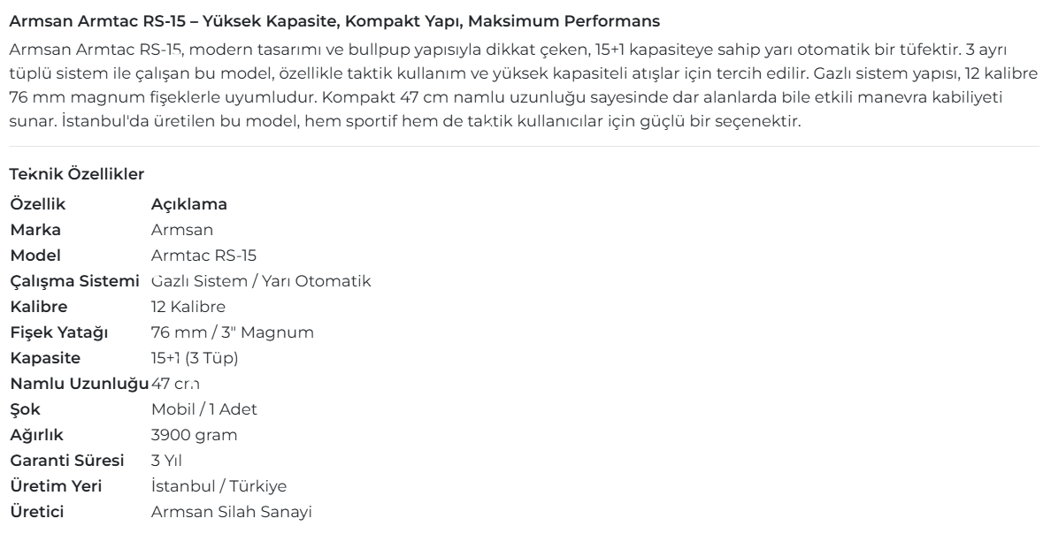 Armsan Armtac RS-15 Black Otomatik Av Tüfeği